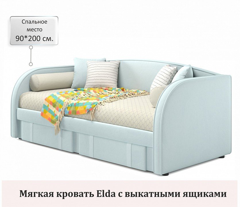 Кровать Кровать Elda (Zeppelin Mobili): гарантия 24 мес., размер спального места 90x200 см., матрас 2000x900 мм, 2 ящика для белья, цвет мята пастель. Высококачественное изделие по доступной цене, модель представлена в нескольких размерах и цветах. Выбирайте проверенных производителей мебели - это залог вашего комфорта.